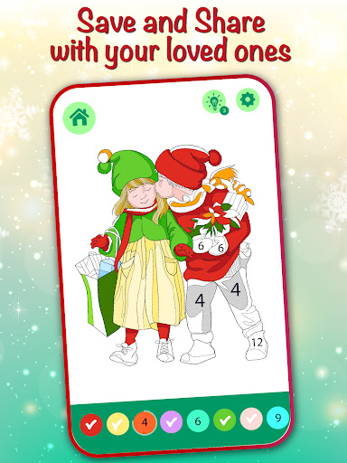 Christmas Cards Coloring Book by numbers is very simple to use and everybody can color this nice and high quality Xmas and Fresh Year pictures. Take a cup of warm tea, sit by the Christmas tree, and paint carefully each single detail on your favorite illustration. Color your Xmas greeting cards and send Xmas greetings to your family or friends. Recommend the application to others and play together!